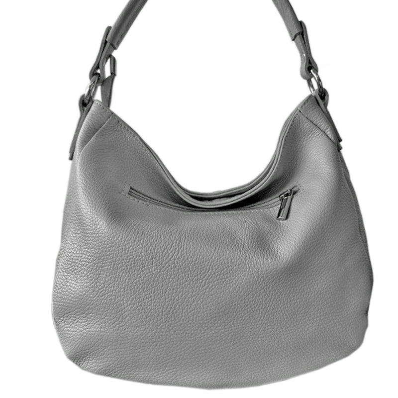 Soft Italian leather medium to larger sized crossbody top zip fastening shoulder bag with adjustable and detachable grab strap and inside zipped divider section.