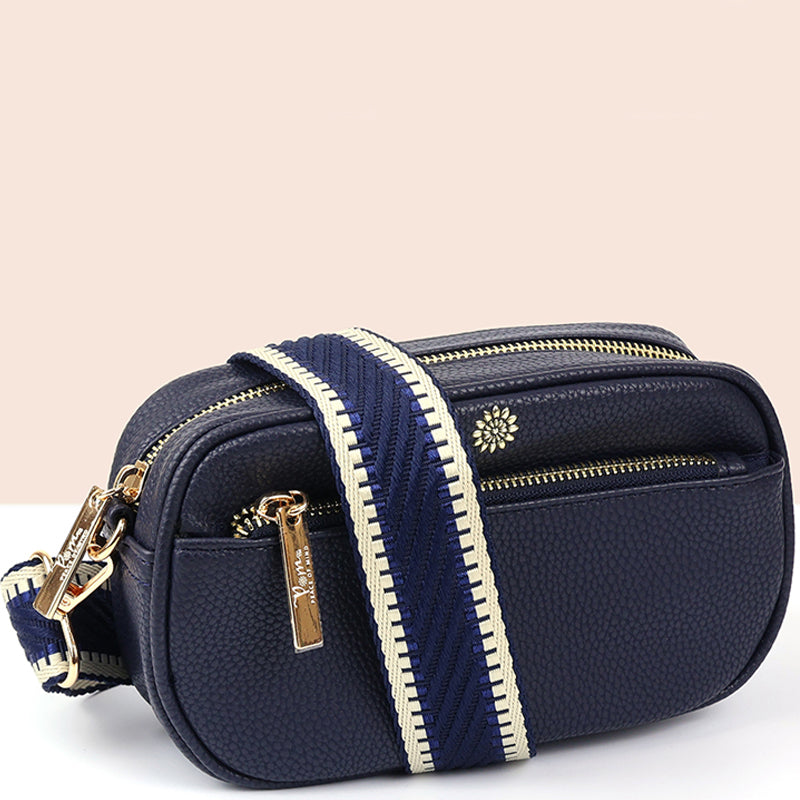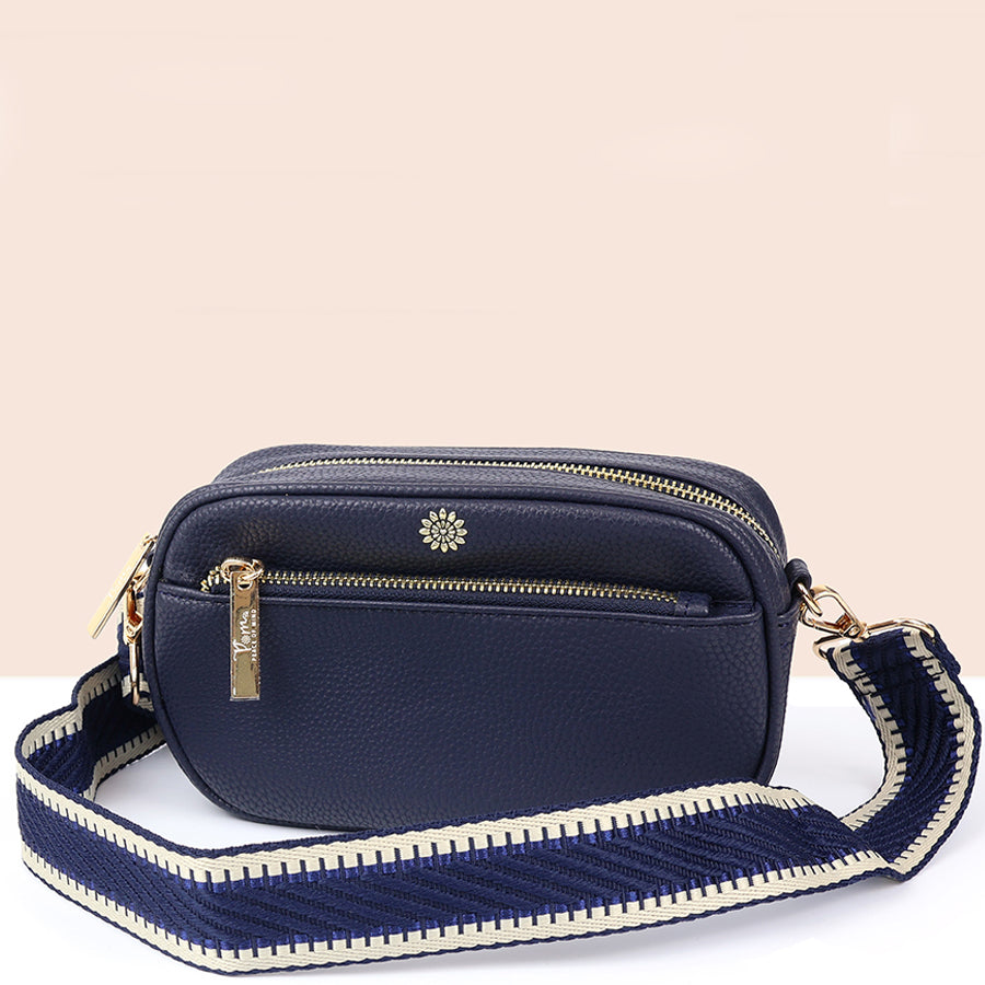 (a) P.O.M. Navy Blue Vegan Leather Shoulder Crossbodybag