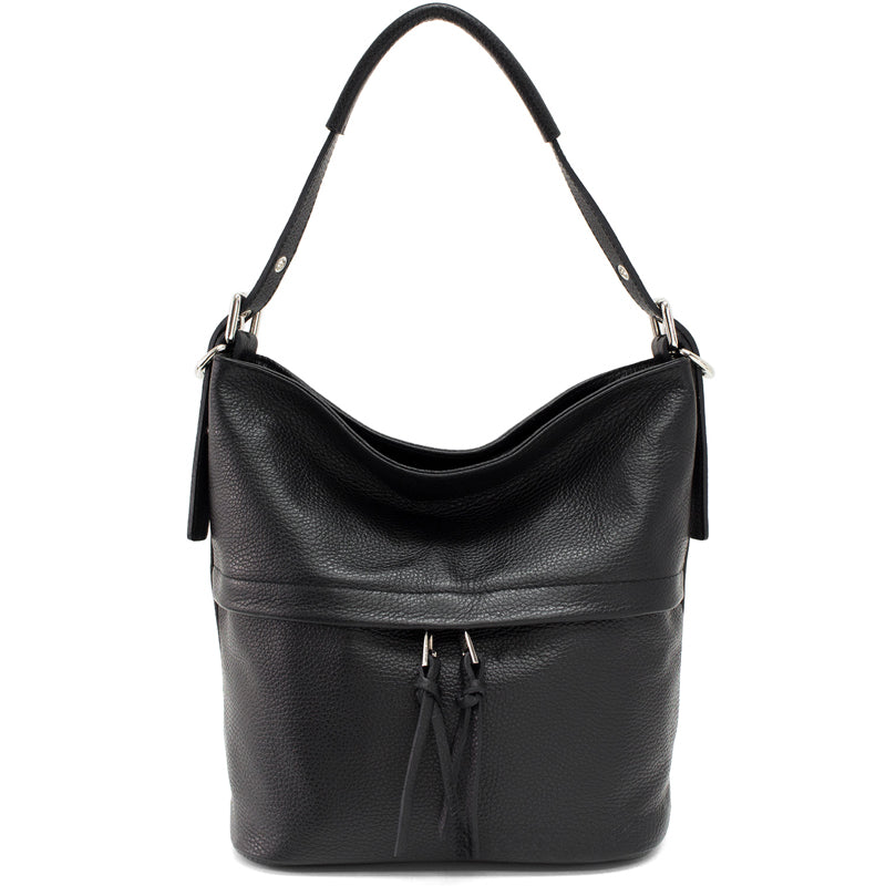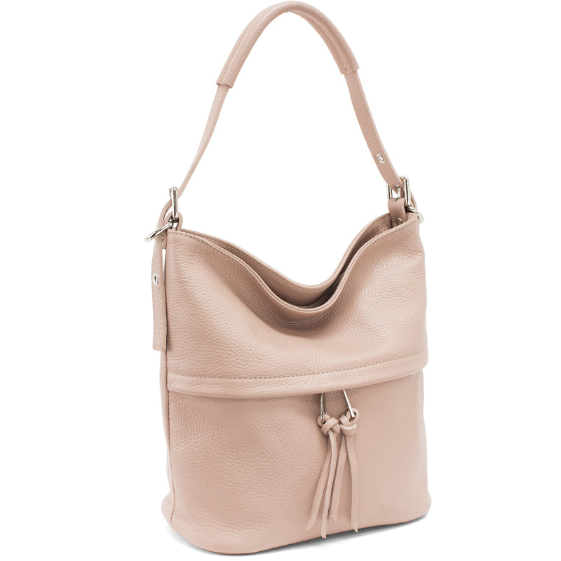 Soft Italian leather medium to larger sized crossbody top zip fastening shoulder bag with adjustable and detachable grab strap.