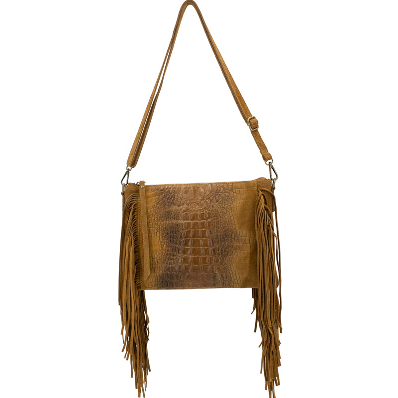 (1e) Your Bag Heaven Dark Tan Leather Suede Clutch Crossbody Shoulder Bag